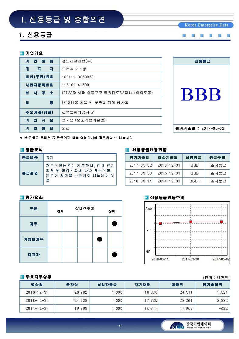 2017 한국기업데이터 신용평가