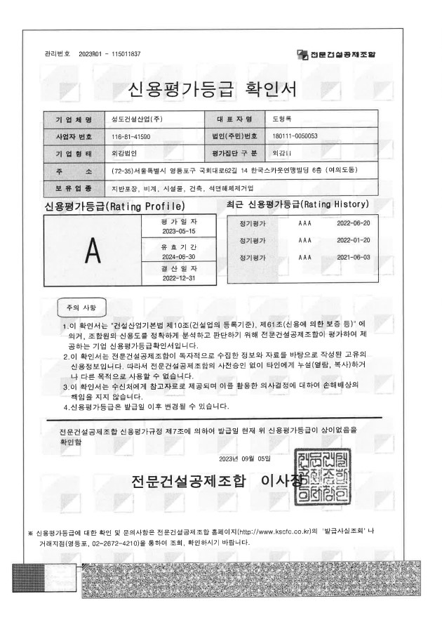 2023 전문건설공제조합 신용평가