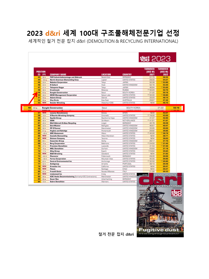 2023 d&ri 세계100대구조물철거회사 49위