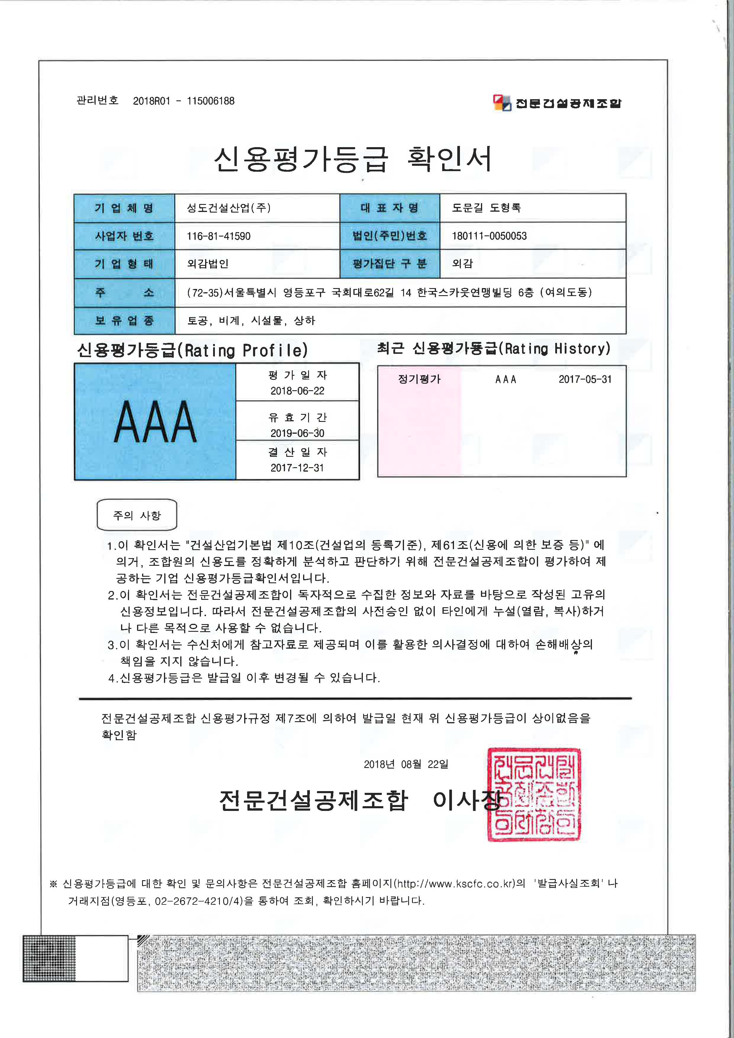 2018 전문건설공제조합 신용평가