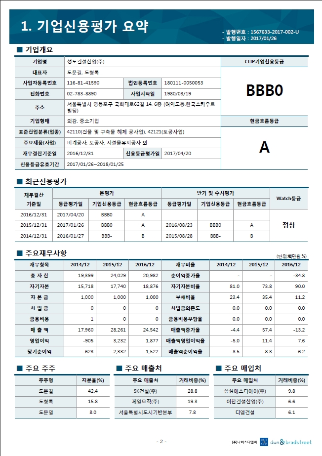2017 한국기업데이터 신용평가