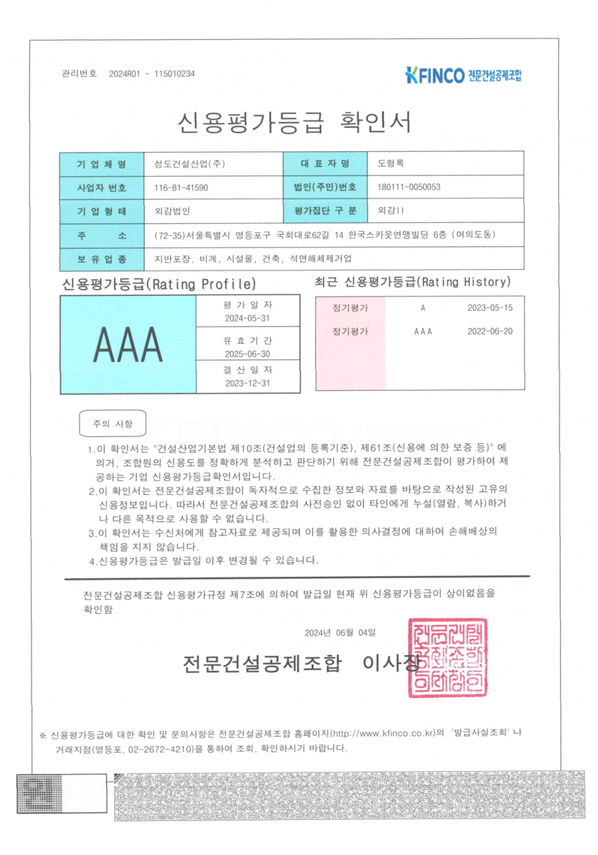 2024 전문건설공제조합 신용평가