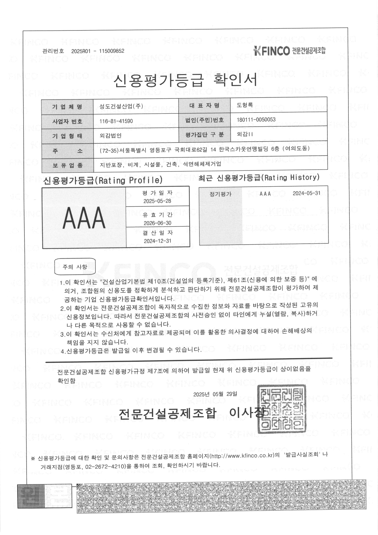 2025 전문건설공제조합 신용평가