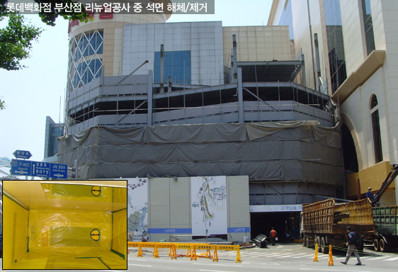 롯데백화점 부산점 리뉴얼공사 중 석면 해체/제거