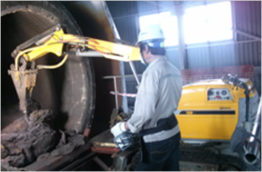 한국 R&M 용광로 내부 불순물 제거 작업