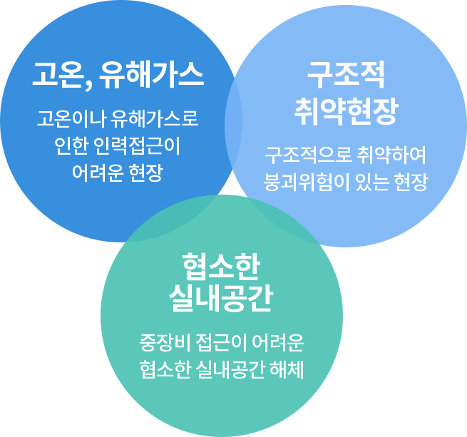 어떠한 작업환경에서도 안전하게 해체 작업이 가능