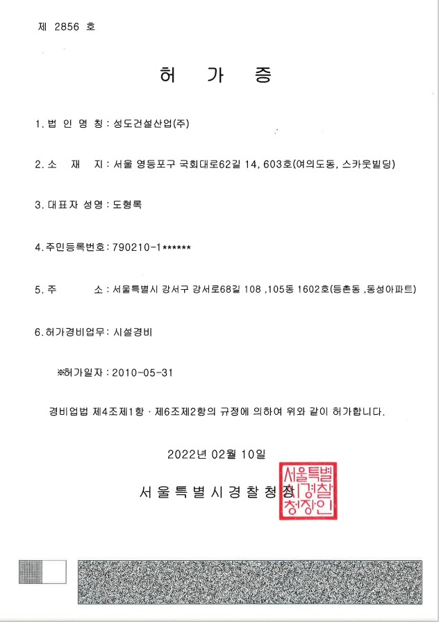 허가증(시설경비)
